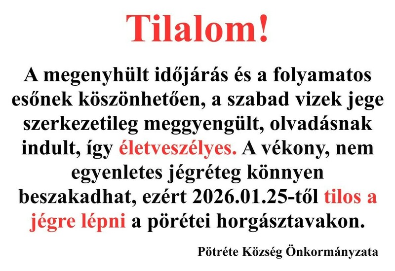 Lékhorgászat tilalom 2026.01.25.
